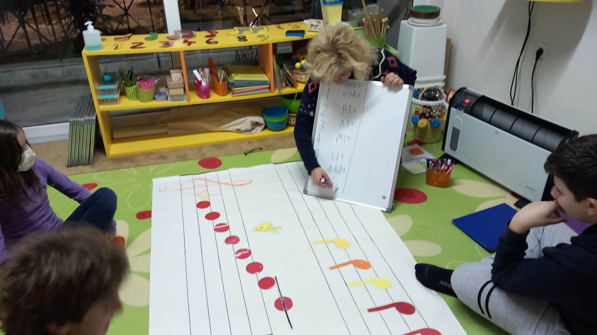 Κείμενο : Η Ροδούλα, όποτε κρίνει ότι μπορεί να γίνει αυτό, οργανώνει workshops για παιδιά εκτός μουσικού εργαστηρίου.